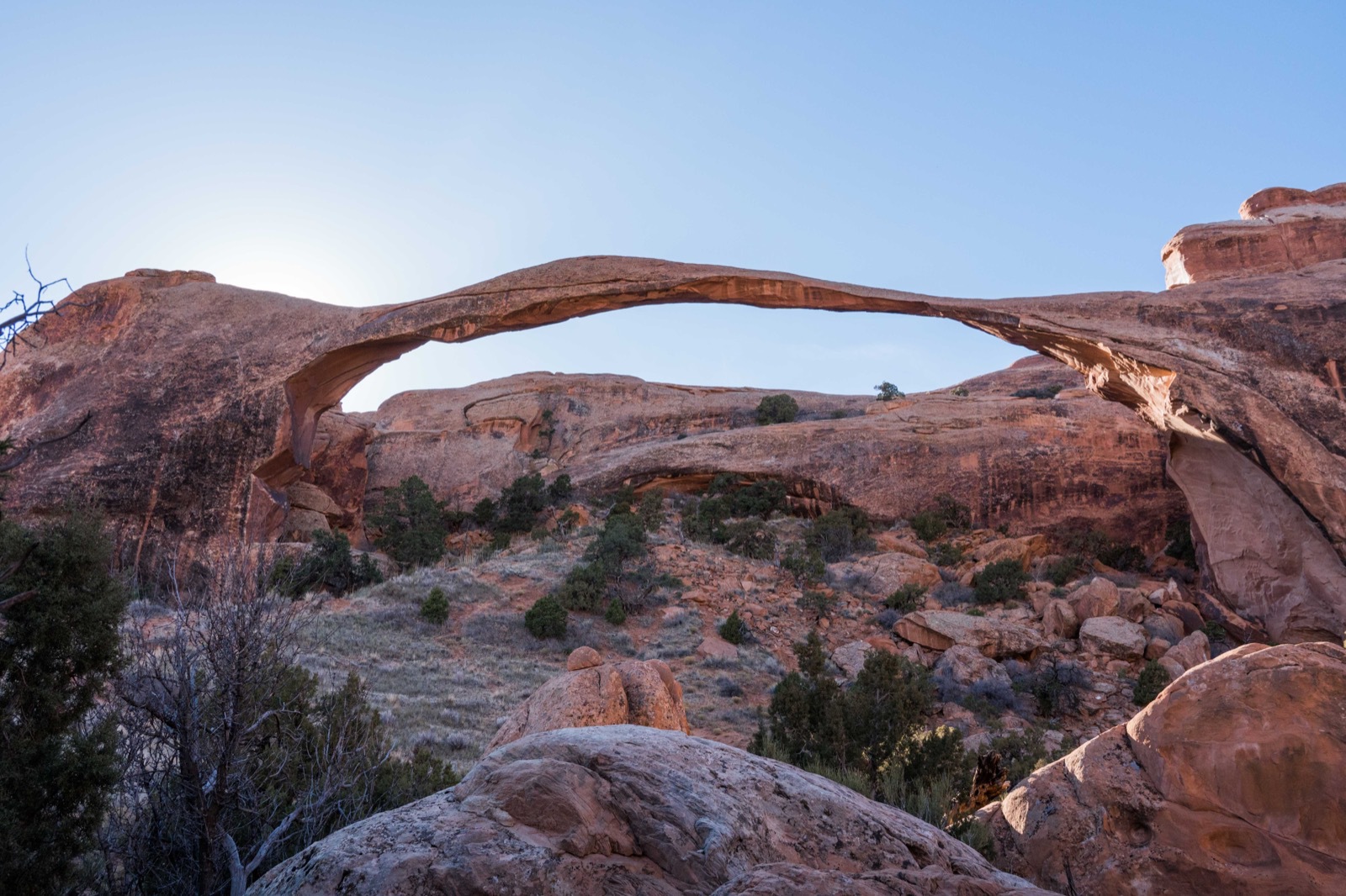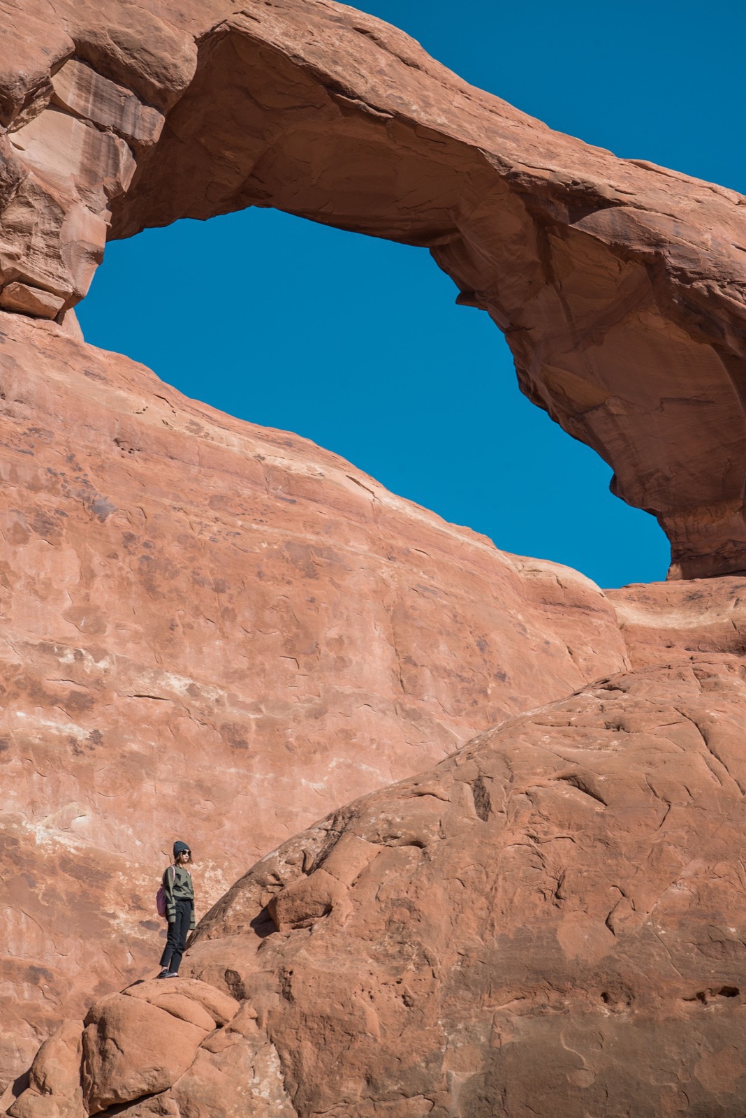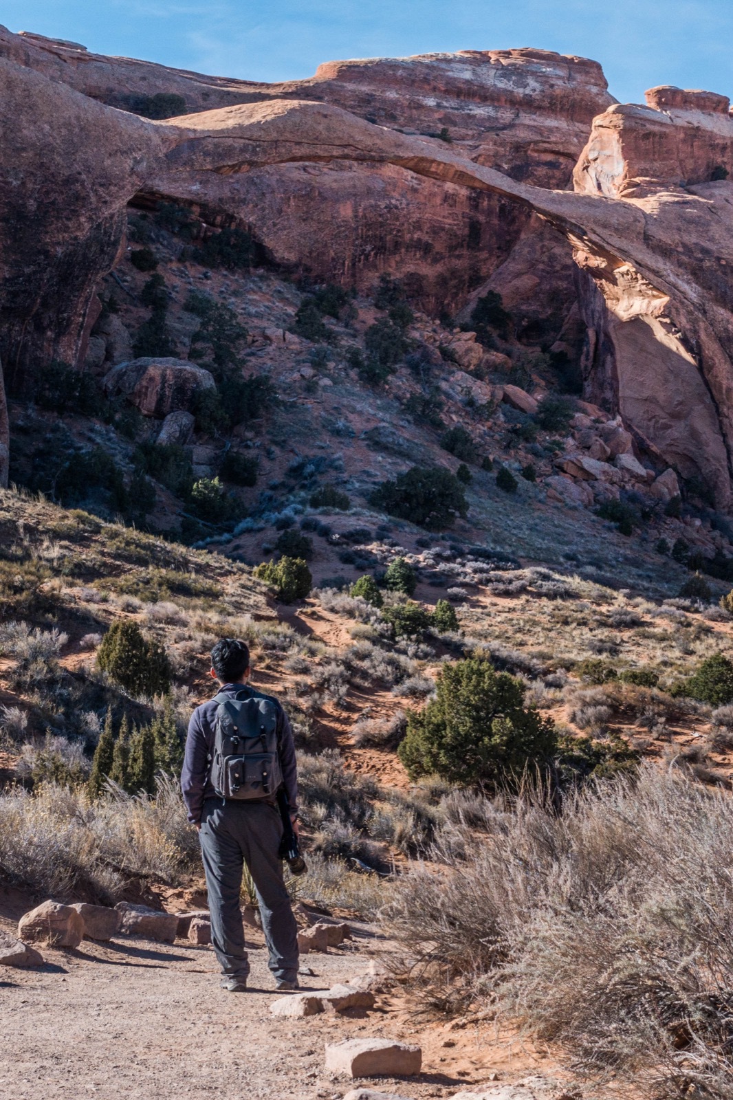 著名的 Landscape Arch 景观拱门,看起来十分危险,中间的岩石一直在脱落,几十年前曾经发生大规模脱落,算是地球地理的见证了。