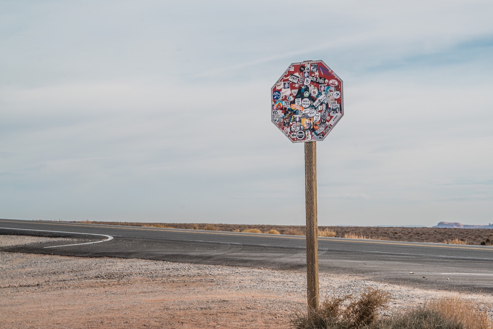 路边的一个路标,上面贴着各式贴纸,各种语言,应该是来自世界各地的游客留下的,也算是给这块荒芜之地,留下一块丰富的人文标记。