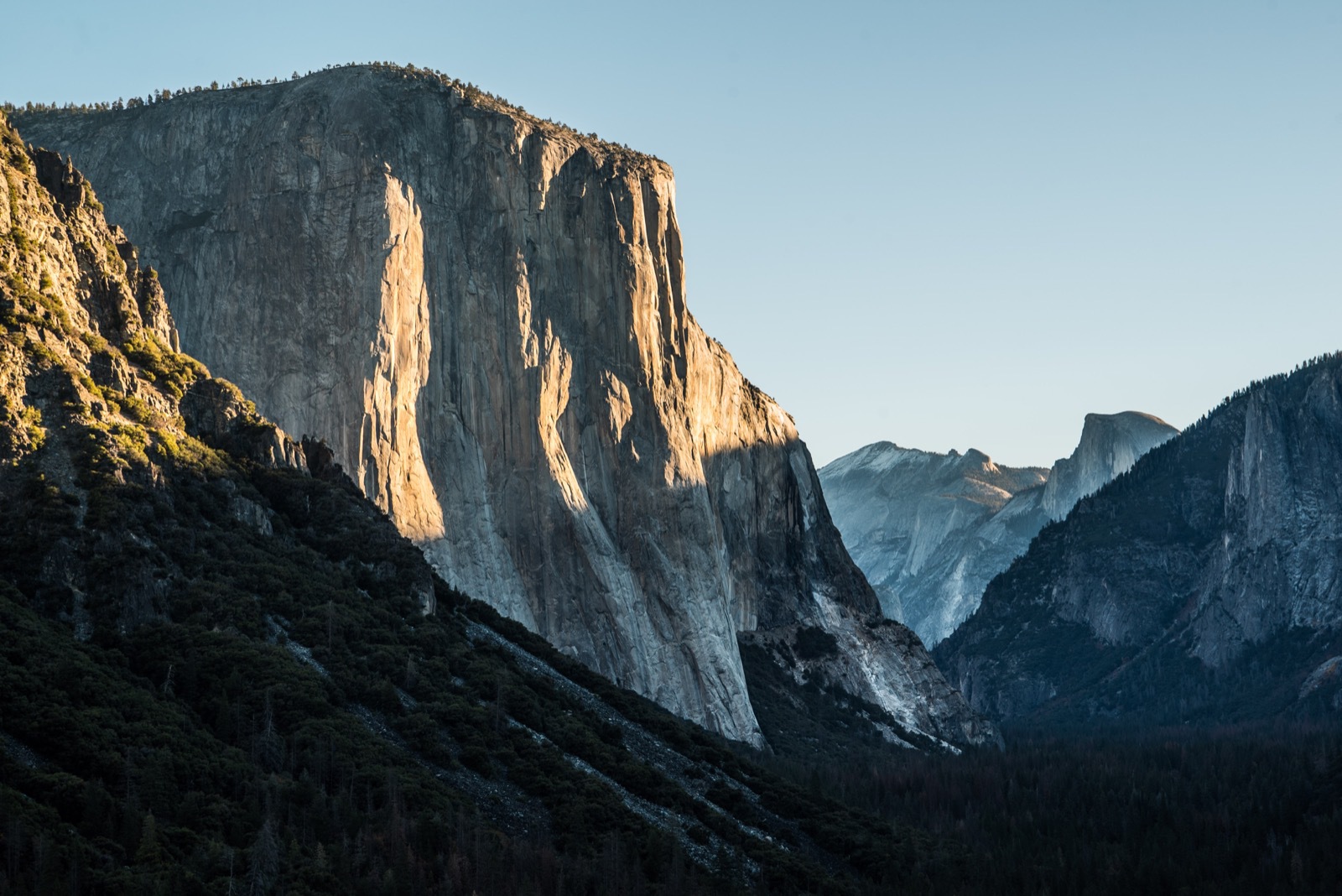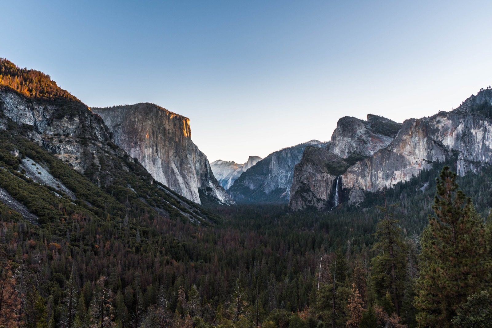 第二天一早,凌晨5点出发,前往优胜美地 Tunnel View 拍日出。无云,天空很通透,其实这种天气并不适合拍风光,少了点层次。