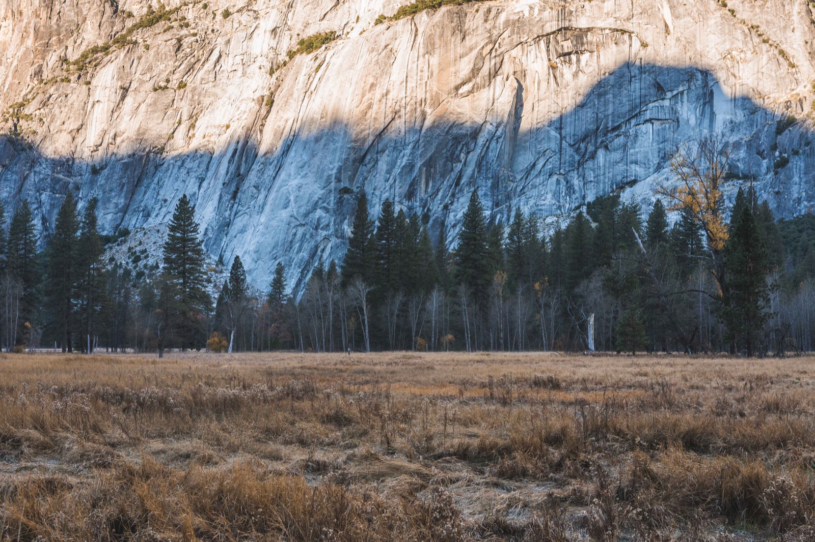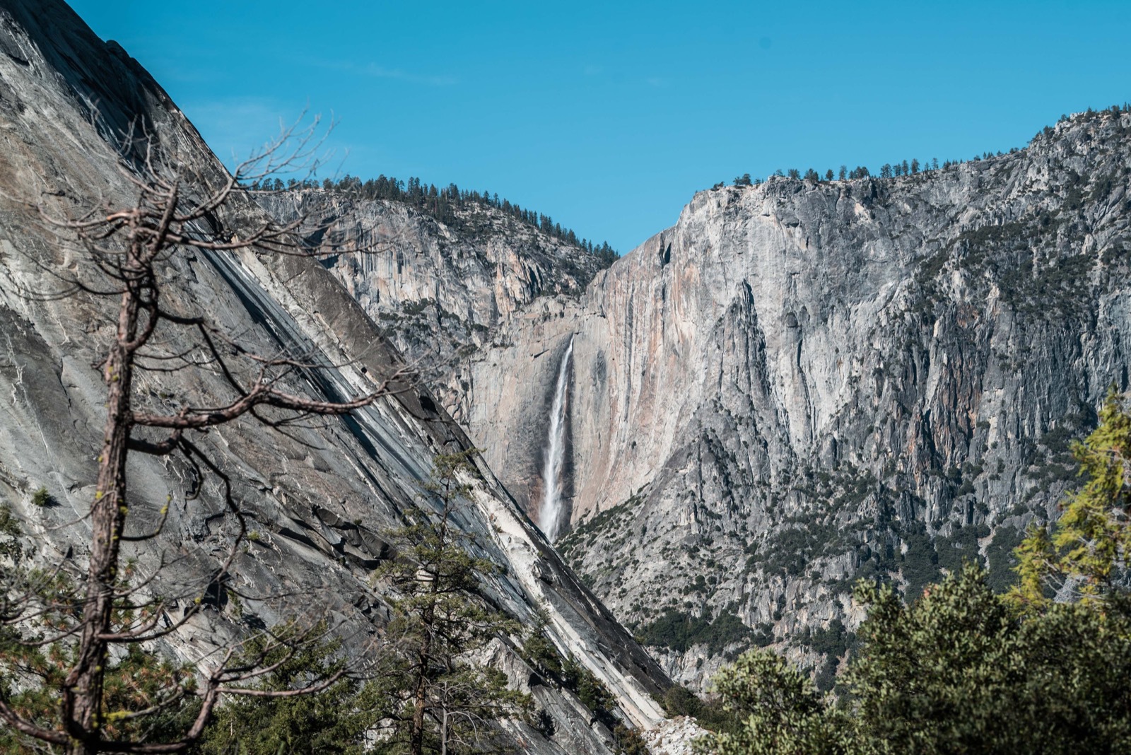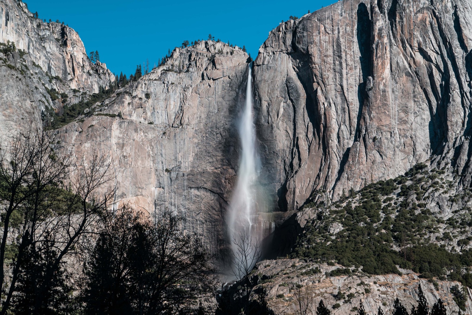比较幸运,虽然是冬天,但是优胜美地瀑布并没有枯竭,这张照片就是著名的 Yosemite Fall,是北美洲落差最大的瀑布,还能看到彩虹。