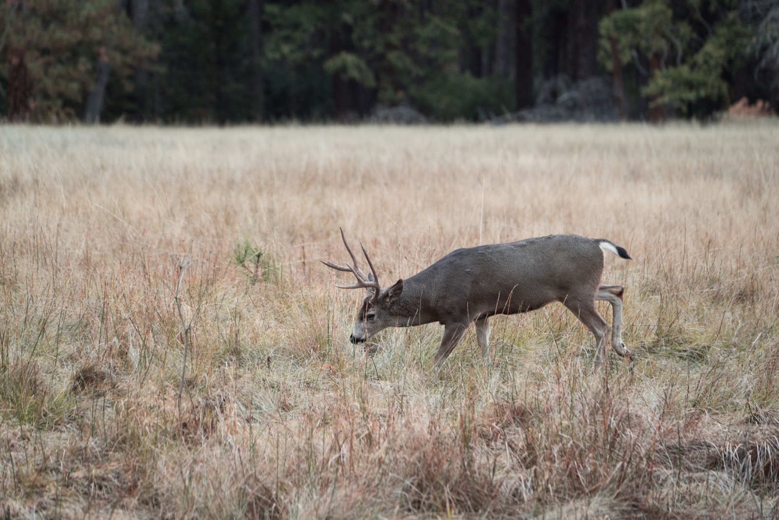 结束徒步,返回山谷,谷中有鹿,也不怕人,两三只在一起,吃着草。