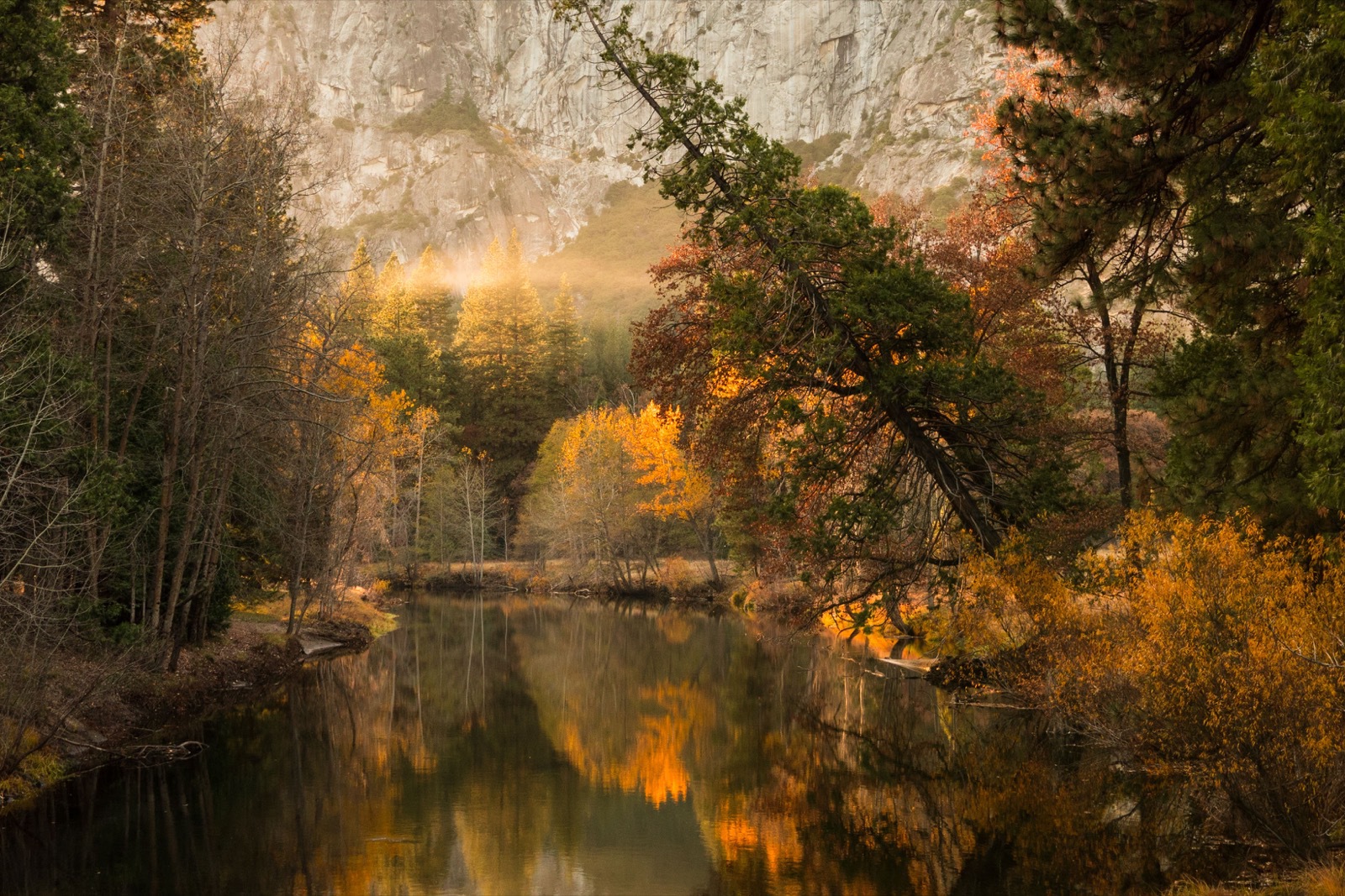 驱车前往优胜美地国家公园。从内华达高纬度的雪山降到温暖的加州,周围树木的颜色又丰富起来了。