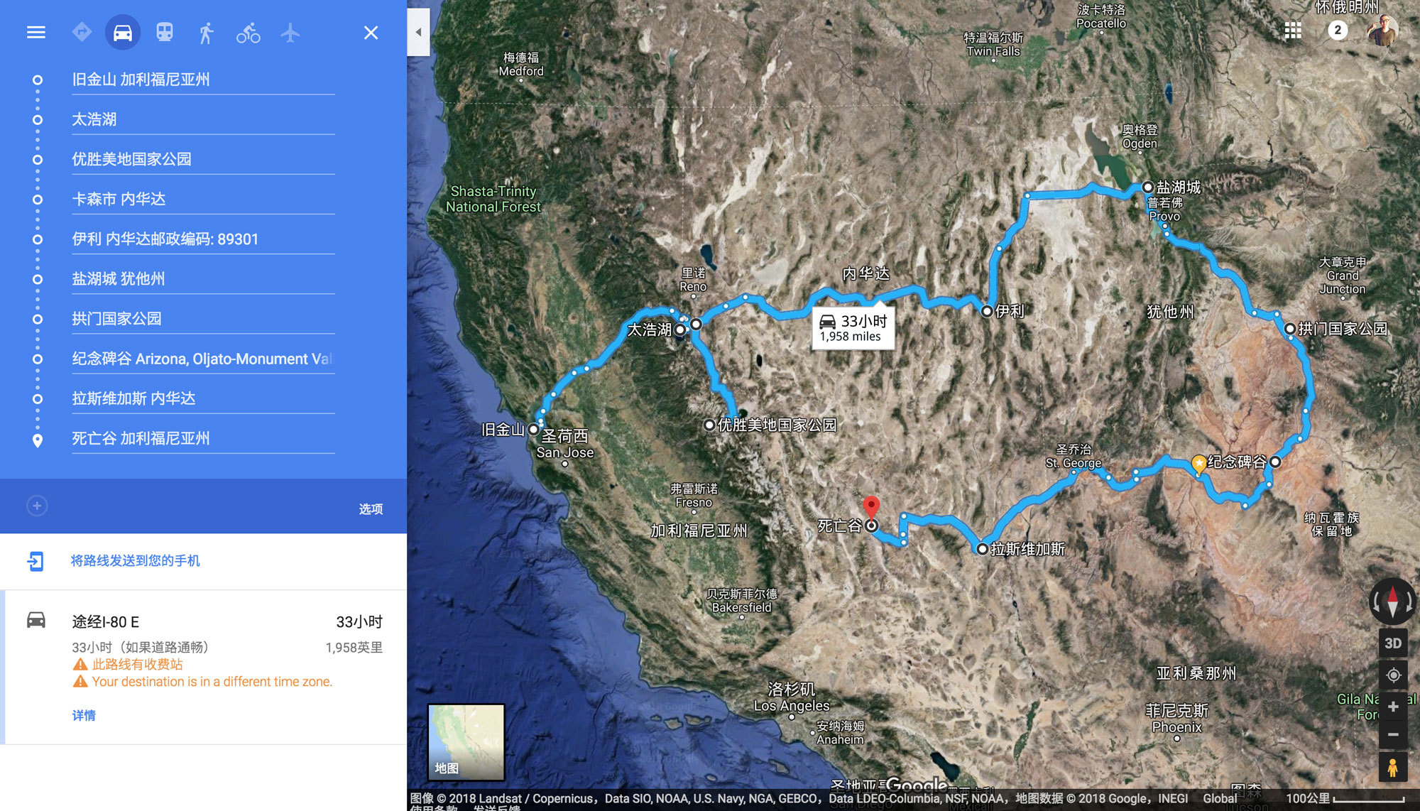 具体的行程如下面的路书。除去前后两天航班,在路上总共14天。除了第一天酒店和最后两天川普饭店是提前预定,其他所有酒店,都是在路上随便订的,走走停停,路线完全看心情。