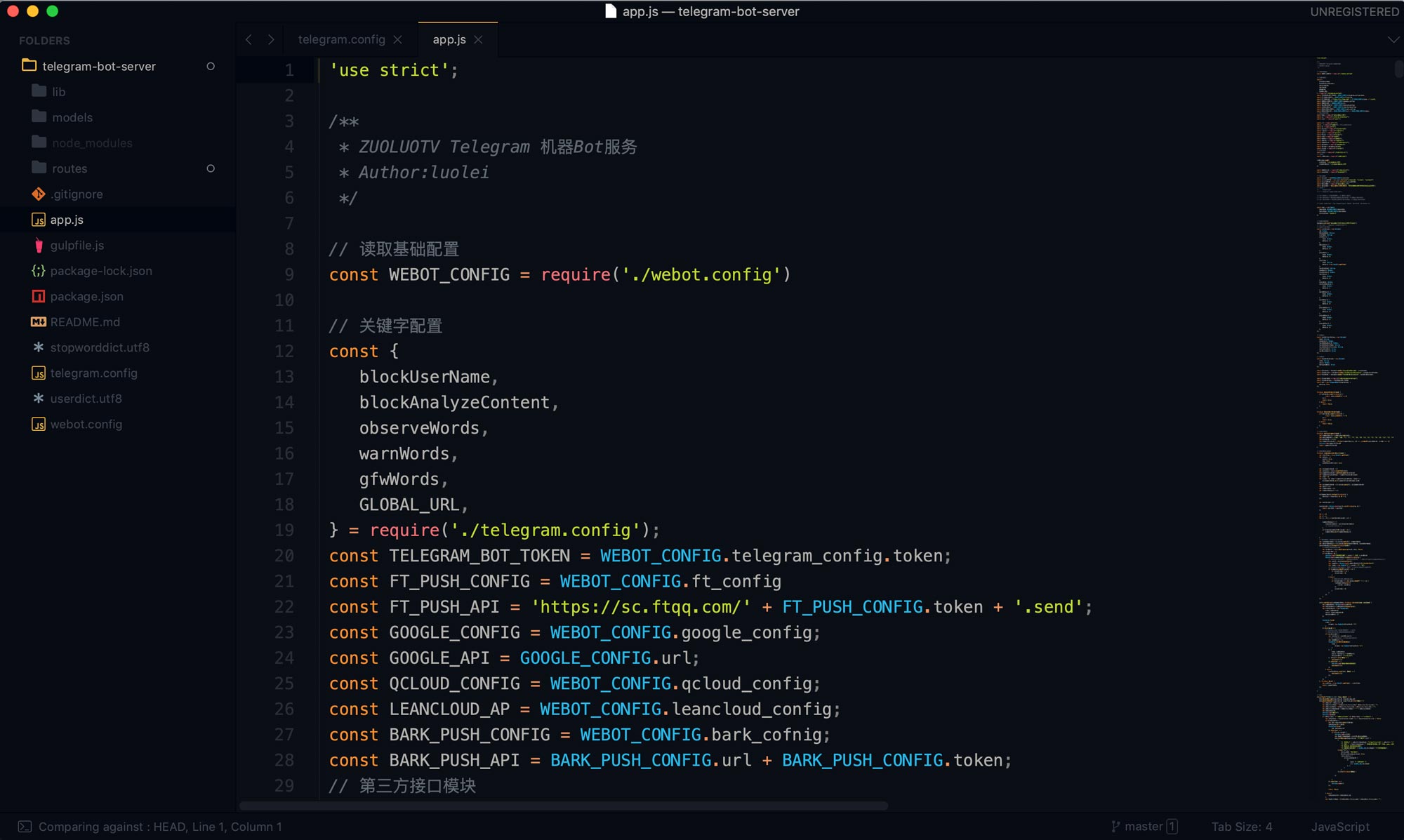 一开始想着写这个机器人,纯粹是因为不满意第三方机器人的限制,看了下Telegram API,发现写一个BOT也不难,就自己用 NodeJS 写了起来,后来随着功能越来越多,倒也写了将近4000行代码。目前机器人还是挺智能的,基本满足了以下功能: