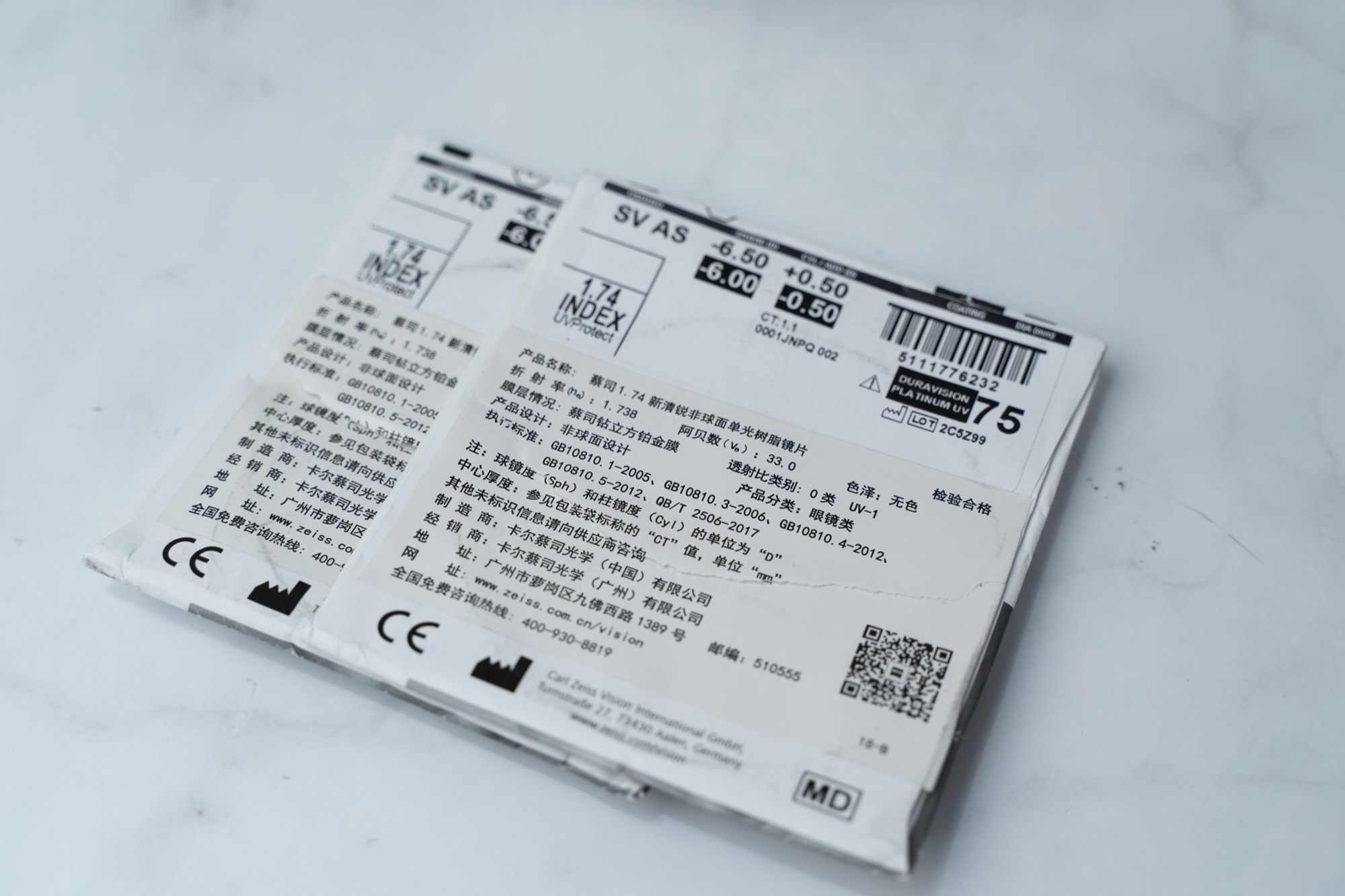 蔡司的镜片,加工完了后,都会把镜片包装送回来,当做保修凭证,上面有二维码,可以在官方微信公众号「卡尔蔡司光学」和小程序,扫码验证防伪。