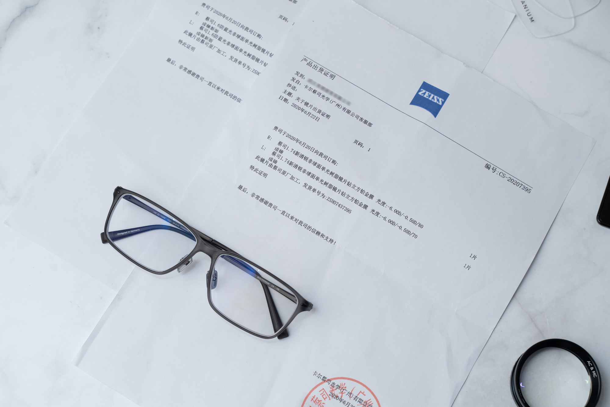 蔡司原厂加工,应该是送到北京或者广州的蔡司镜片加工车间,加工完了后,蔡司会提供有一份盖章的「产品出货证明」。