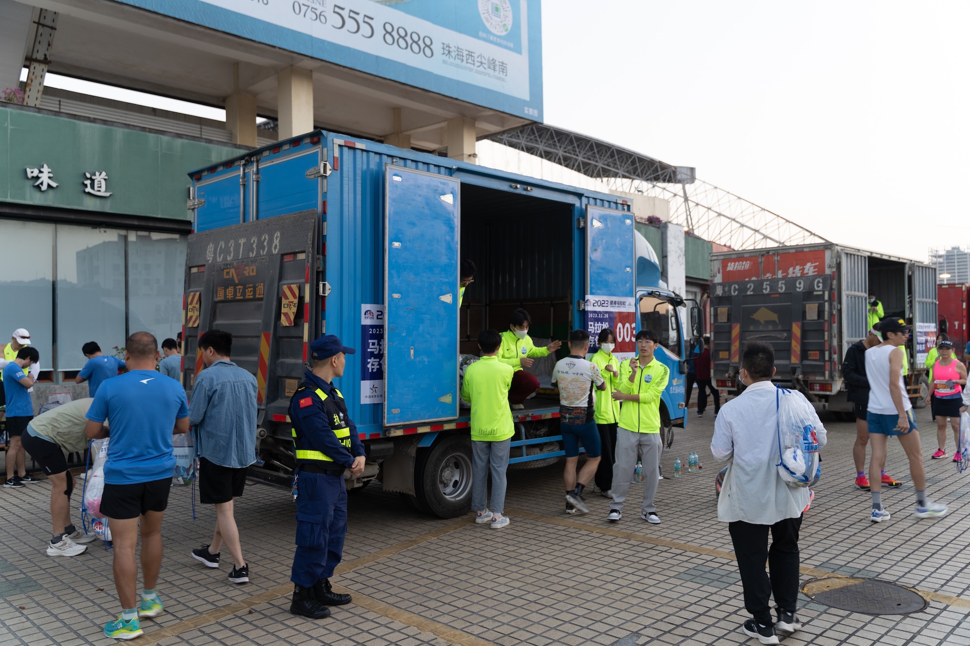 存包的车,每个人的号码步上有对应的车编号,跑完之后在终点找到对应的车,就可以取回自己的包。
