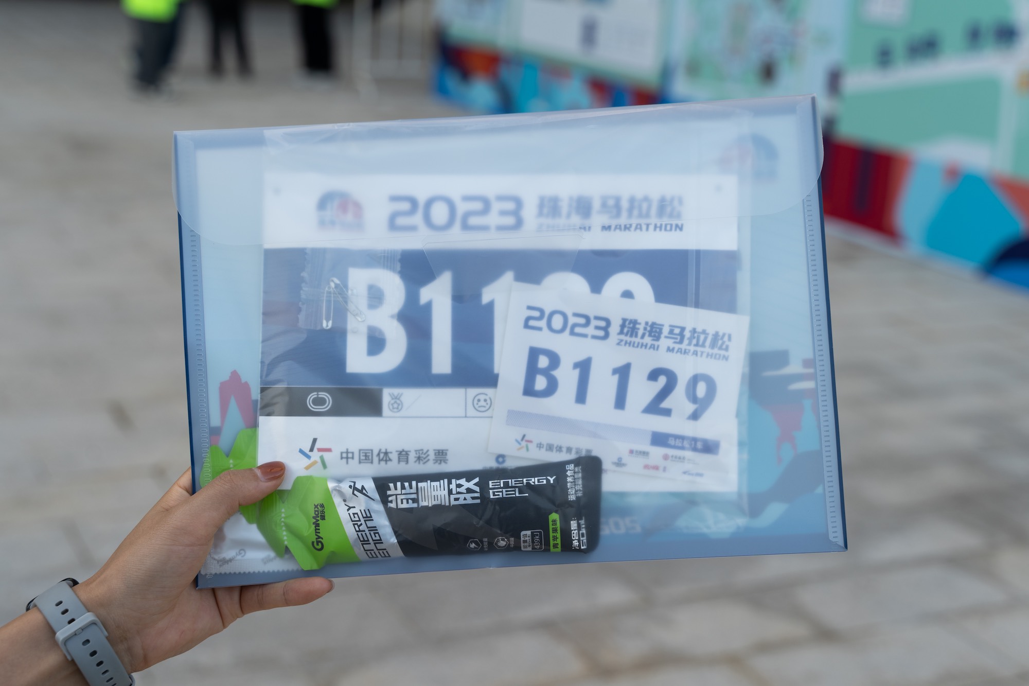 除了参赛服、参赛背包,还有一些能量胶之类的东西,这次我的号码是B1129,属于 B 区起跑。
