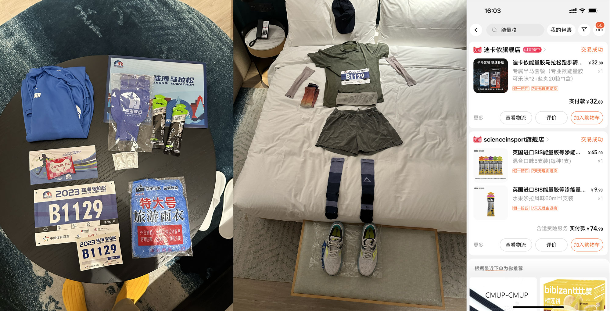 这次另外我也买了能量胶和盐丸,之前7次马拉松都没用过,这次准备尝鲜试试。